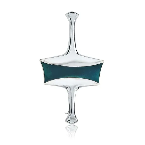 David Andersen & Bjorn Sigurd Ostern Designed 1960's Green Enamel Sterling Viking Brooch