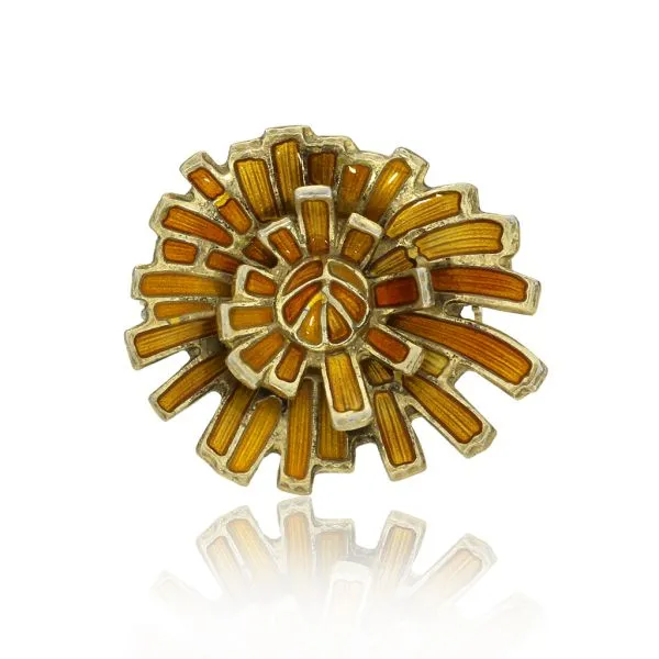 David Andersen Sterling Silver and Enamel Mum Flower Mid Century Pin