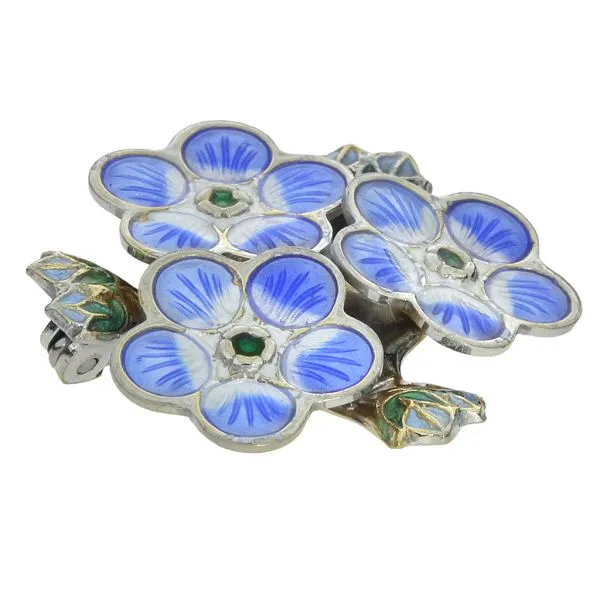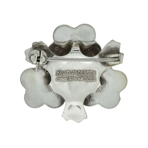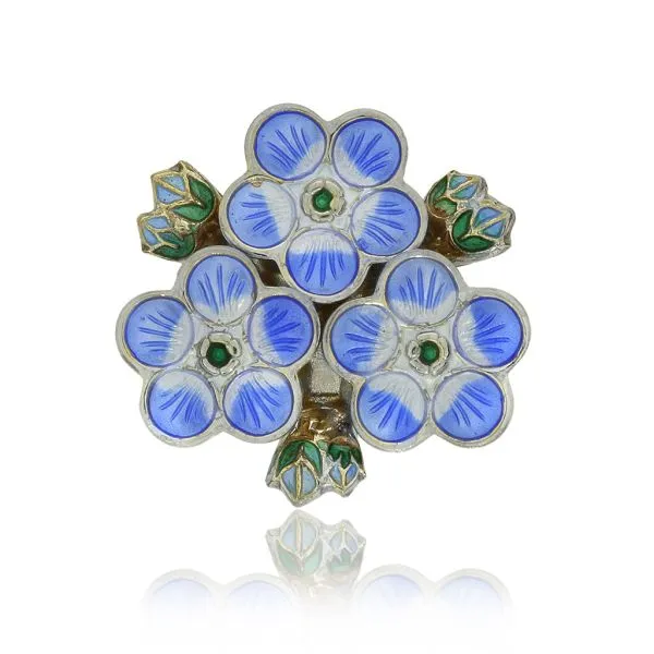 David Andersen Vintage Sterling Silver Forget Me Not Flower Guilloche Enamel Brooch