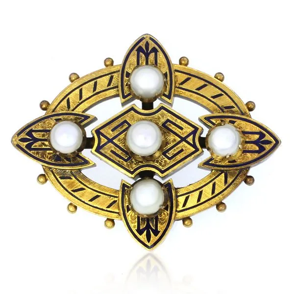 Etruscan Revival 14K Yellow Gold Pearl & Enamel Brooch Image 2 Purple Creek Holly Springs, NC