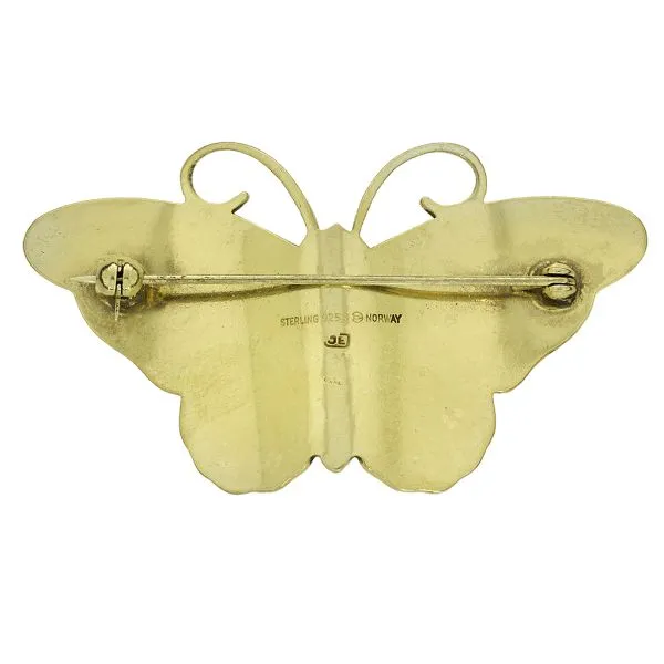 Hroar Prydz 1930's Vintage Large Sterling Silver Guilloche Green Enamel Butterfly Purple Creek Holly Springs, NC