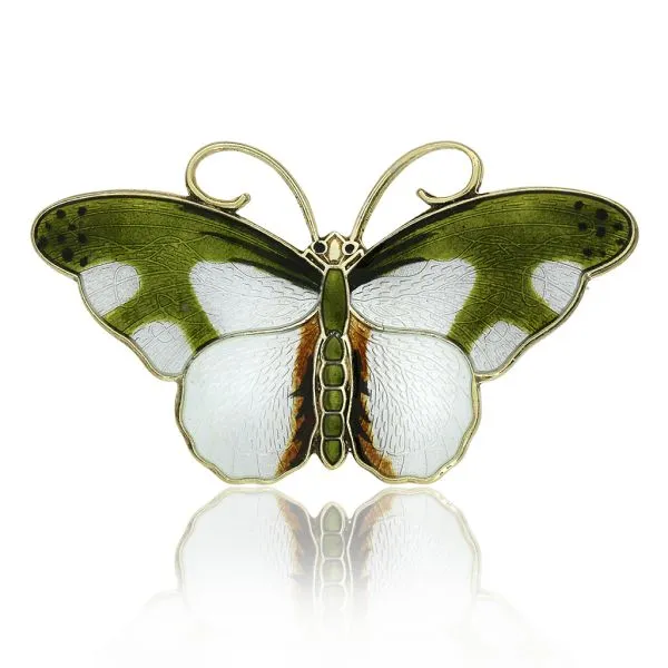 Hroar Prydz 1930's Vintage Large Sterling Silver Guilloche Green Enamel Butterfly