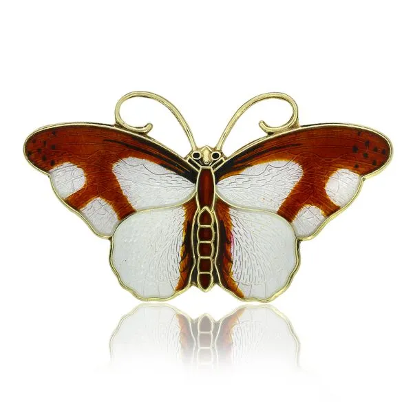 Hroar Prydz 1930's Vintage Medium Sterling Silver Guilloche Orange Enamel Butterfly