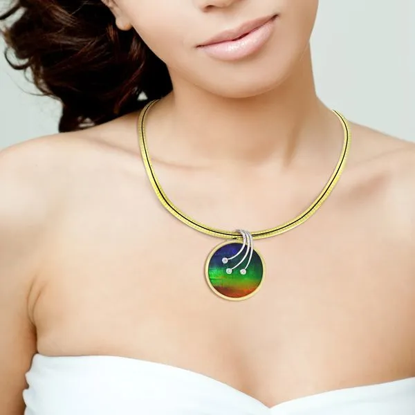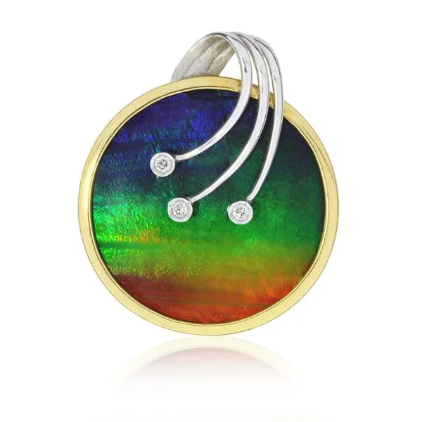 Korite 18K Yellow and White Gold Ammolite & Natural Diamond Pendant Image 2 Purple Creek Holly Springs, NC