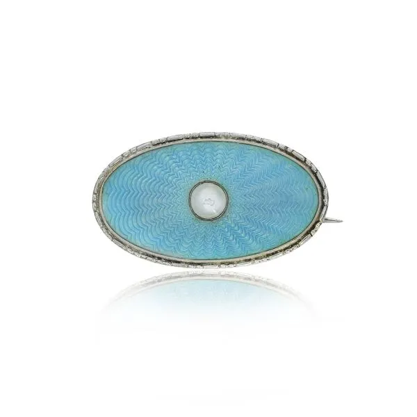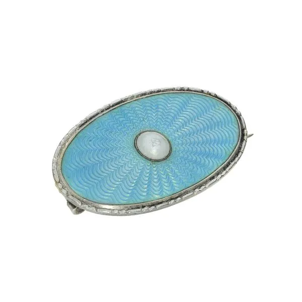 Marius Hammer Antique 930 Silver Blue Oval Guilloche Enamel Brooch Image 2 Purple Creek Holly Springs, NC