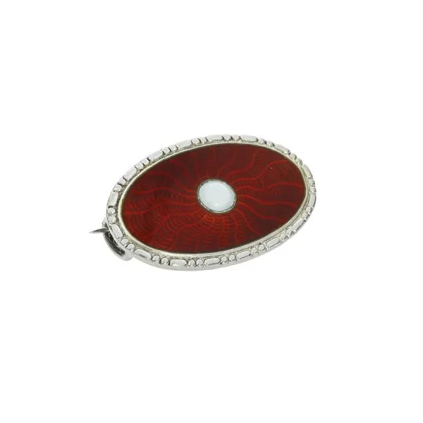 Marius Hammer Antique 930 Silver Red Oval Guilloche Enamel Brooch Image 2 Purple Creek Holly Springs, NC