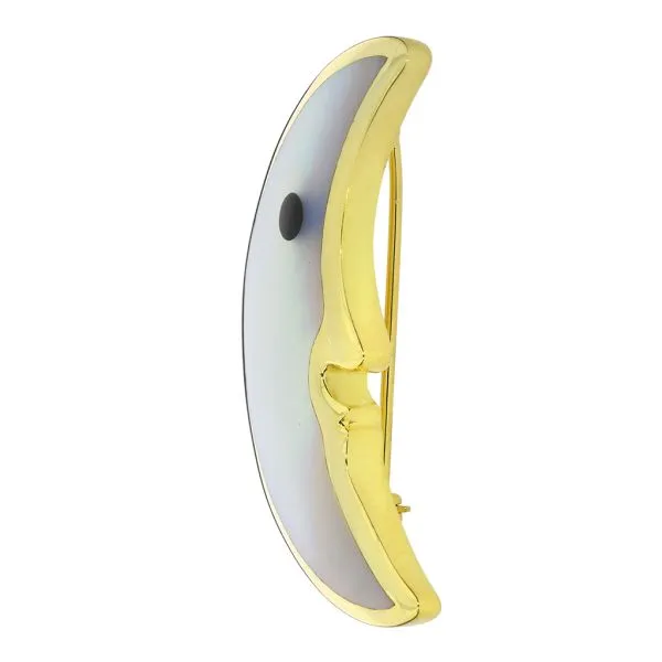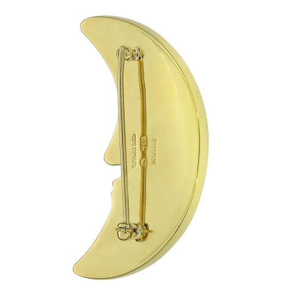 Tiffany & Co. 18K Yellow Gold Mother of Pearl and Jade Crescent Moon Brooch