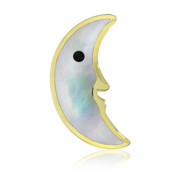 Tiffany & Co. 18K Yellow Gold Mother of Pearl and Jade Crescent Moon Brooch Image 2 Purple Creek Holly Springs, NC