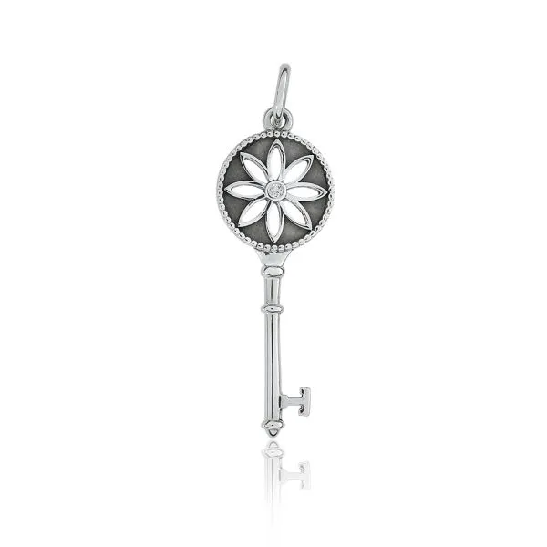 Tiffany & Co Diamond Daisy Key Sterling Silver Pendant