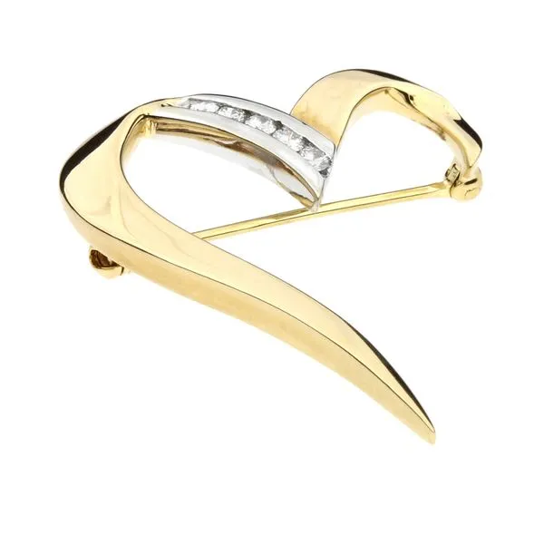 Vintage 14K Yellow and White Gold .20ctw Natural Diamond Open Heart Pin Image 2 Purple Creek Holly Springs, NC