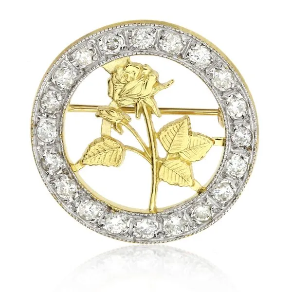 Vintage 14K Yellow and White Gold .80ctw Natural Diamond Rose Pin Image 2 Purple Creek Holly Springs, NC
