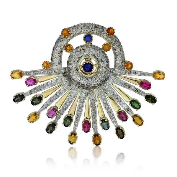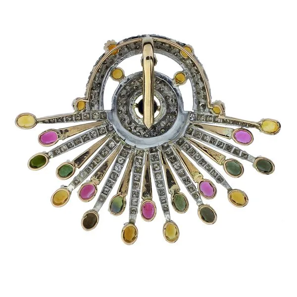 Vintage 14K Yellow Gold & Sterling, 4.775ctw Natural Diamond, 6.69ctw Tourmaline & Sapphire Pendant Image 2 Purple Creek Holly Springs, NC
