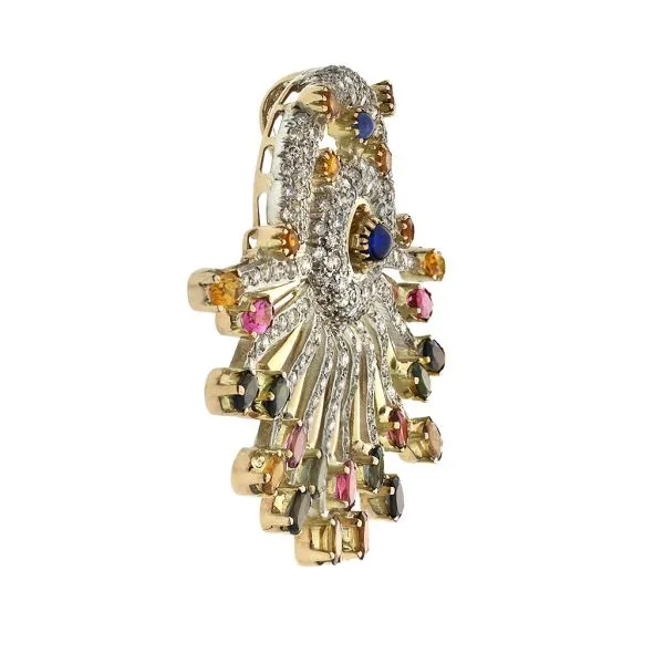 Vintage 14K Yellow Gold & Sterling, 4.775ctw Natural Diamond, 6.69ctw Tourmaline & Sapphire Pendant