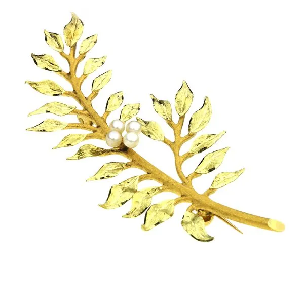 Vintage 18K Yellow Gold Pearl Floral Brooch Image 2 Purple Creek Holly Springs, NC