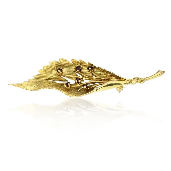 Vintage 18K Yellow Gold Ruby Leaf Brooch Image 2 Purple Creek Holly Springs, NC