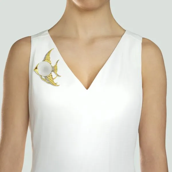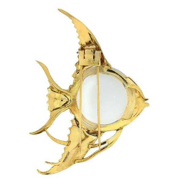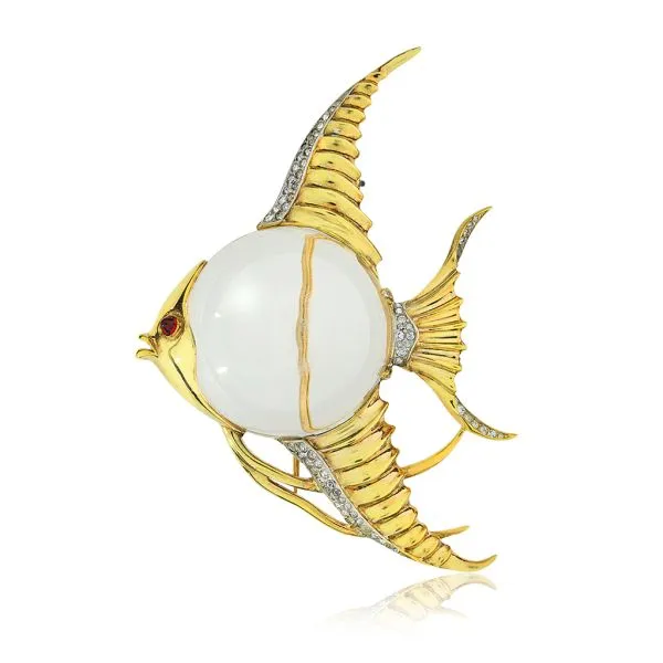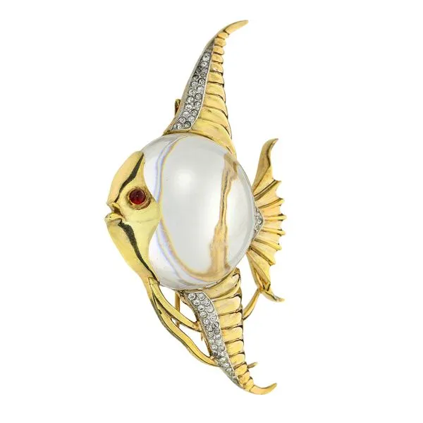 One of Trifari's most innovative and revered designs was the Jelly Belly pin, named for the solid Lucite pearl belly placed in figural animal and insect pieces. These charming animal and insects quickly became collector's items, and are still highly sought after for the unique design and craftsmanship that went into each piece.