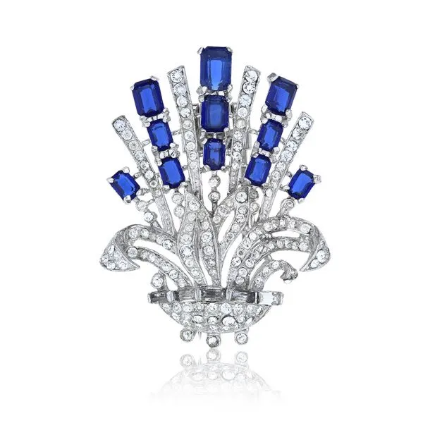 Vintage Crown Trifari Alfred Philippe Sterling Silver Floral Spray in Flower Basket Clip