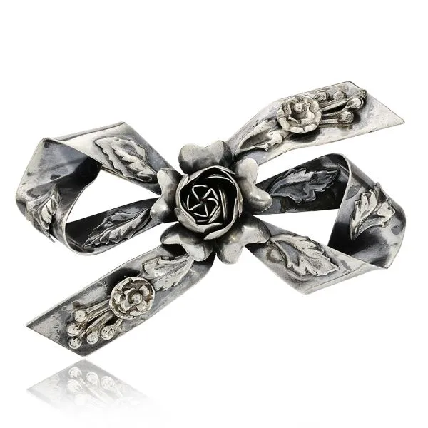 Vintage Hobe Sterling Silver Floral Bow Brooch made in 1940's Image 2 Purple Creek Holly Springs, NC