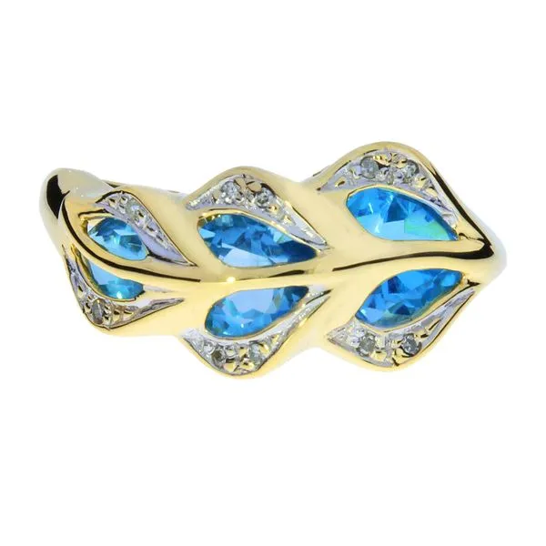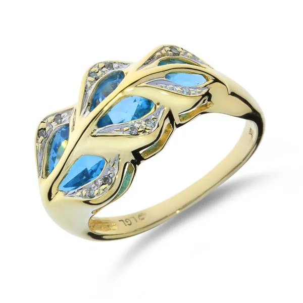10K Yellow Gold Blue Topaz & Natural Diamond Ring