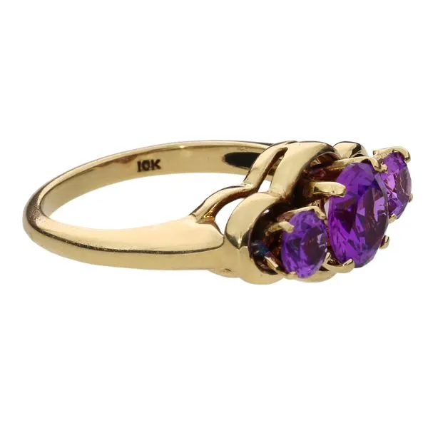 10K Yellow Gold Vintage 2.68ctw Created Sapphire 3 Stone Ring Image 3 Purple Creek Holly Springs, NC