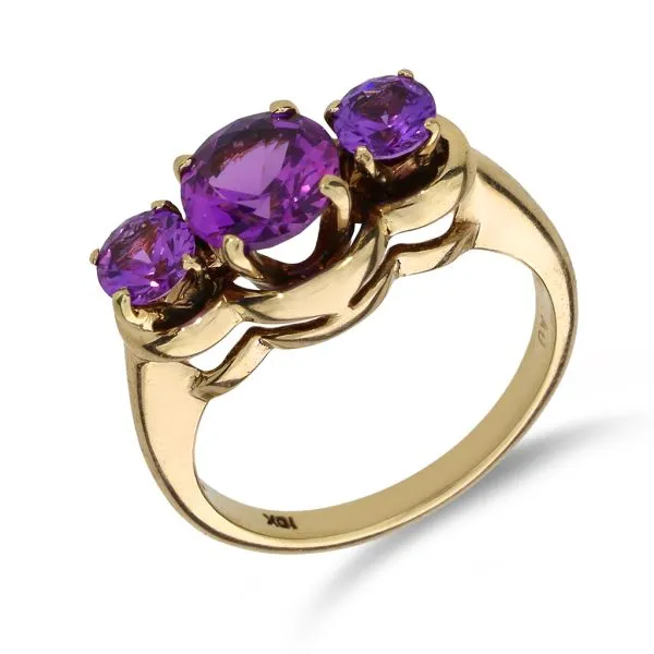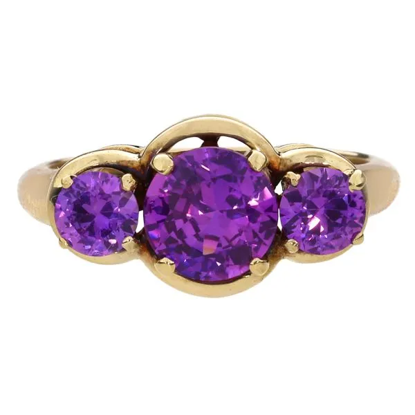 10K Yellow Gold Vintage 2.68ctw Created Sapphire 3 Stone Ring Purple Creek Holly Springs, NC