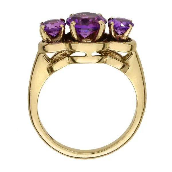 10K Yellow Gold Vintage 2.68ctw Created Sapphire 3 Stone Ring Image 2 Purple Creek Holly Springs, NC