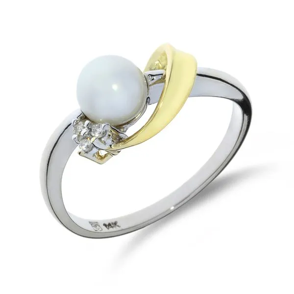 14K White and Yellow Gold Pearl & Natural Diamond Shooting Star Ring Image 2 Purple Creek Holly Springs, NC