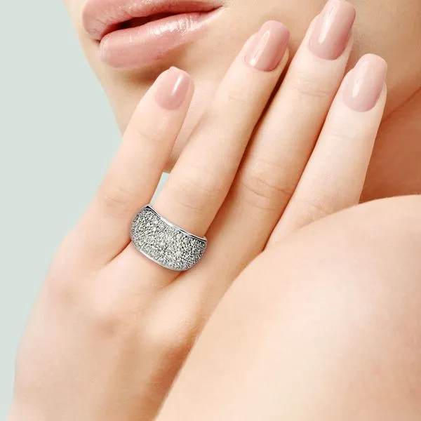 14K White Gold 1.08ctw Natural Diamond Dome Ring