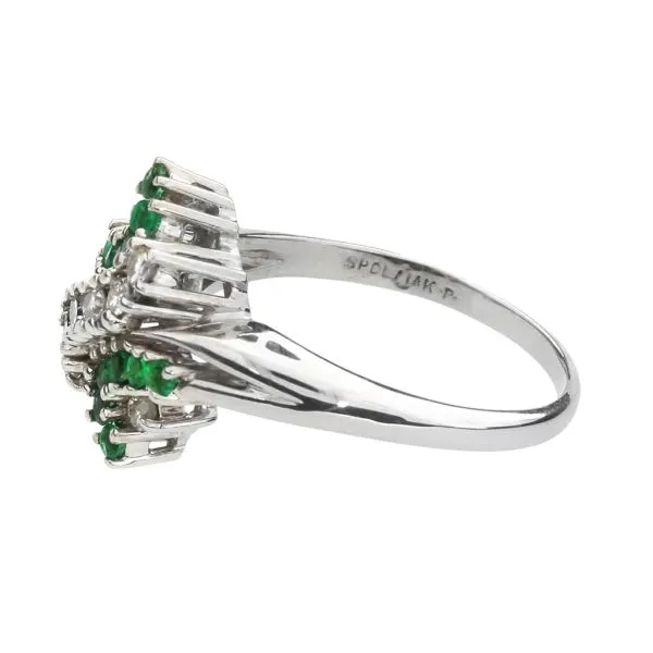 14K White Gold .30ctw Emerald & Natural Diamond Cluster Bypass Ring