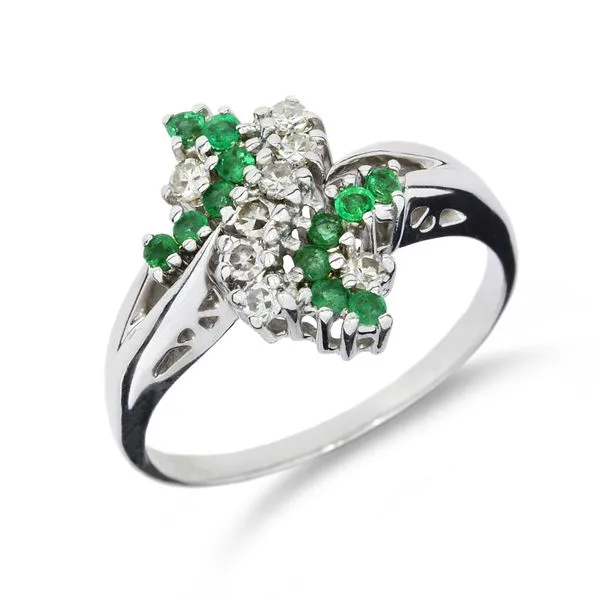 14K White Gold .30ctw Emerald & Natural Diamond Cluster Bypass Ring Purple Creek Holly Springs, NC