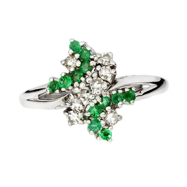 14K White Gold .30ctw Emerald & Natural Diamond Cluster Bypass Ring Image 2 Purple Creek Holly Springs, NC