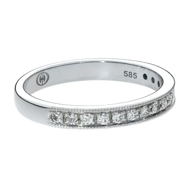 14K White Gold .375ctw Natural Diamond Milgrain Wedding, Stacking Band