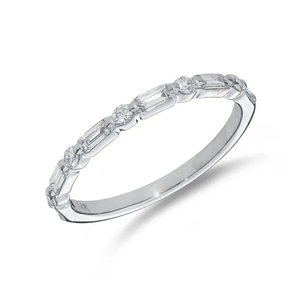 14K White Gold .57ctw Alternating Round and Baguette Natural Diamond Wedding or Stacking Band