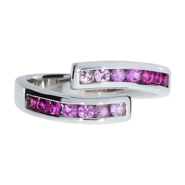 14K White Gold Graduated Pink Sapphires Bypass Ring