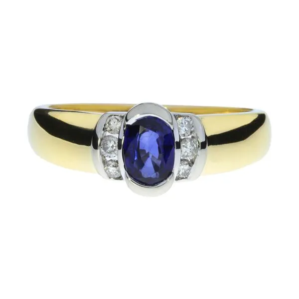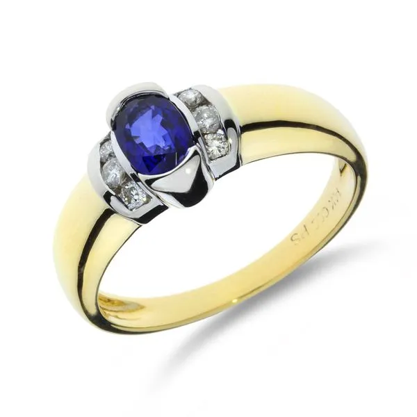 14K Yellow and White Gold .70ct Blue Sapphire & Natural Diamond Ring Image 2 Purple Creek Holly Springs, NC