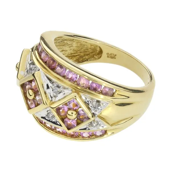 14K Yellow and White Gold Pink Tourmaline & Natural Diamond Cluster Ring Image 2 Purple Creek Holly Springs, NC