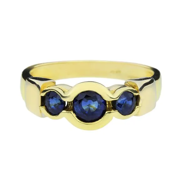 14K Yellow Gold 1.20ctw Blue Sapphire 3 Stone Past Present Future Ring Image 2 Purple Creek Holly Springs, NC