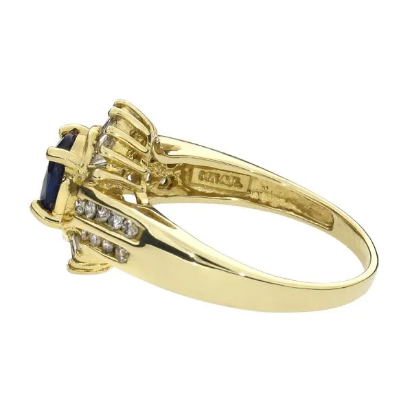 14K Yellow Gold 1.30ct Blue Sapphire & Natural Diamond Halo Ring Image 3 Purple Creek Holly Springs, NC