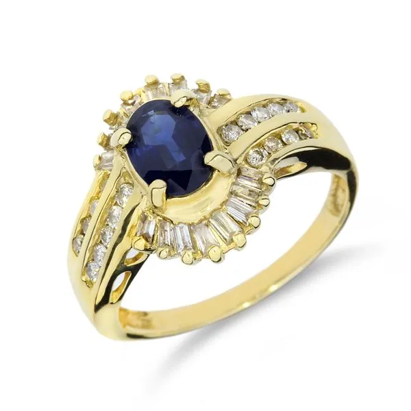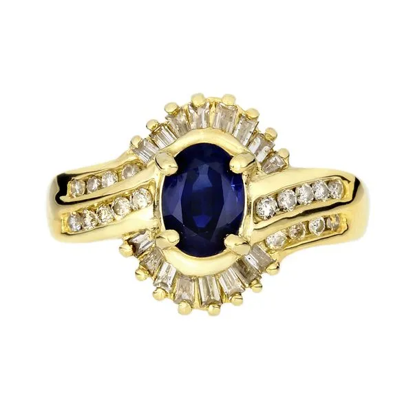 14K Yellow Gold 1.30ct Blue Sapphire & Natural Diamond Halo Ring Image 2 Purple Creek Holly Springs, NC