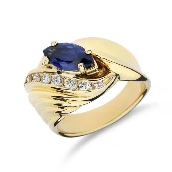 14K Yellow Gold 1.40ct Blue Sapphire & Natural Diamond Ring Purple Creek Holly Springs, NC