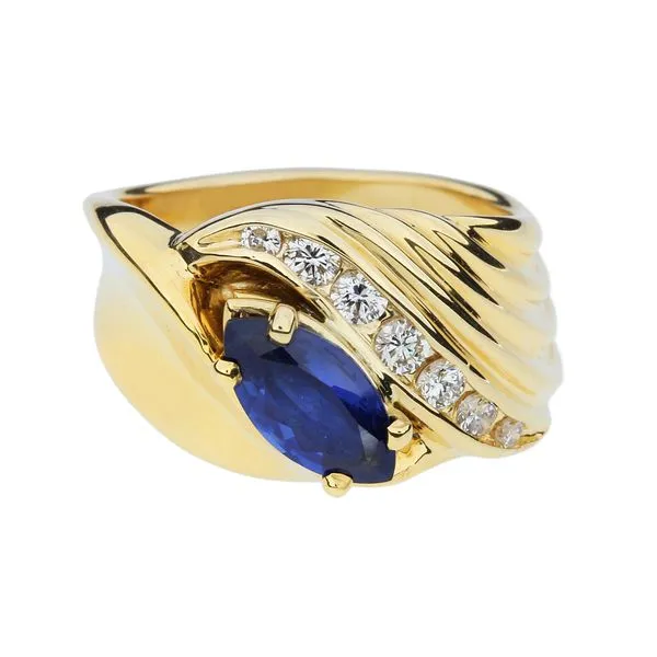 14K Yellow Gold 1.40ct Blue Sapphire & Natural Diamond Ring Image 2 Purple Creek Holly Springs, NC