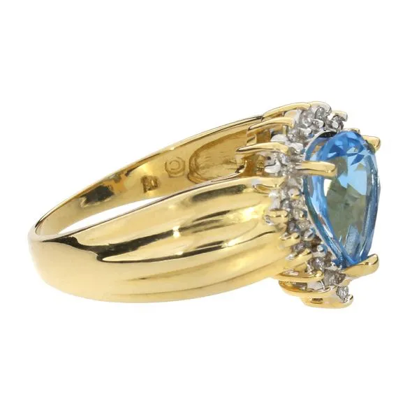 14K Yellow Gold 1.52ct Blue Topaz & Natural Diamond Halo Ring Image 4 Purple Creek Holly Springs, NC
