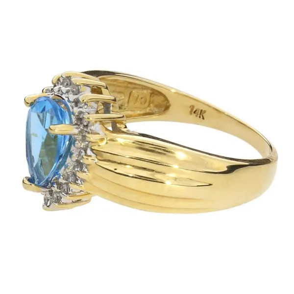 14K Yellow Gold 1.52ct Blue Topaz & Natural Diamond Halo Ring Image 5 Purple Creek Holly Springs, NC