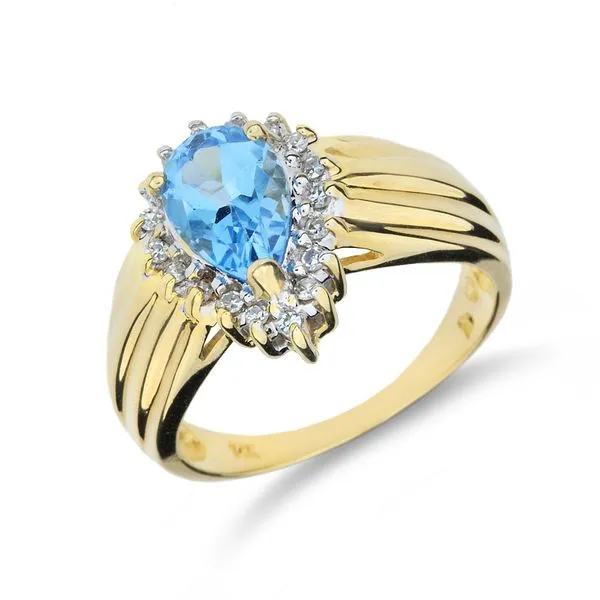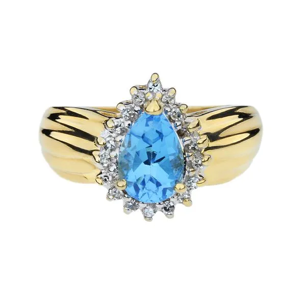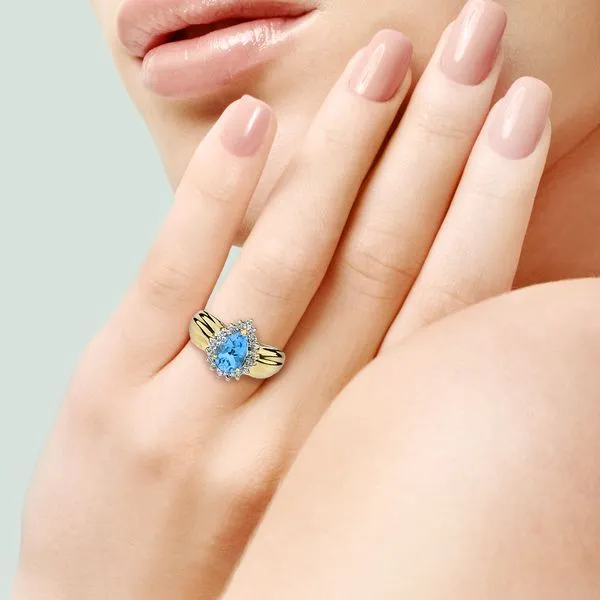 14K Yellow Gold 1.52ct Blue Topaz & Natural Diamond Halo Ring