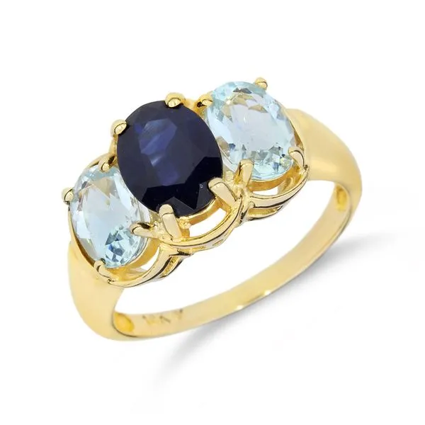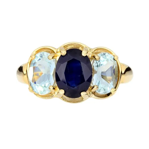 14K Yellow Gold 1.80ct Sapphire & 1.44ctw Aquamarine 3 Stone Ring