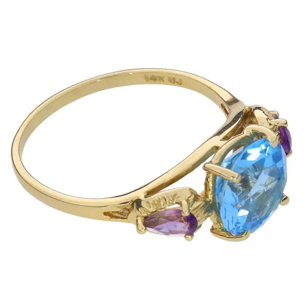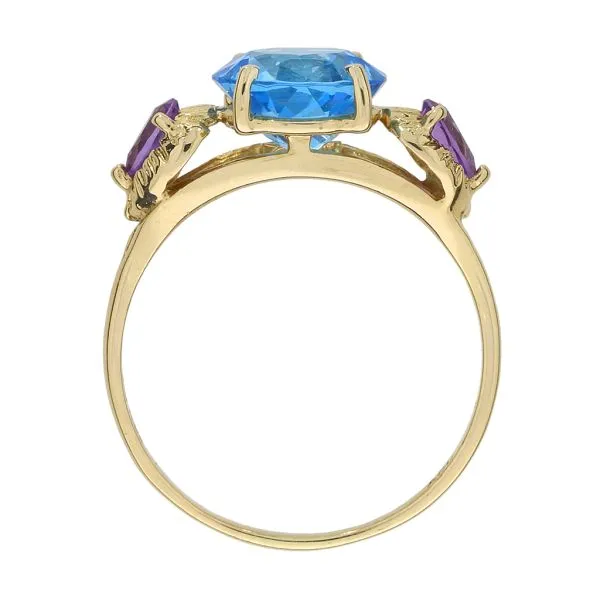 14K Yellow Gold 2.89ct Blue Topaz and Amethyst 3 Stone Ring Image 4 Purple Creek Holly Springs, NC
