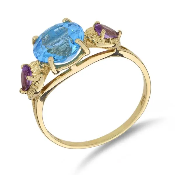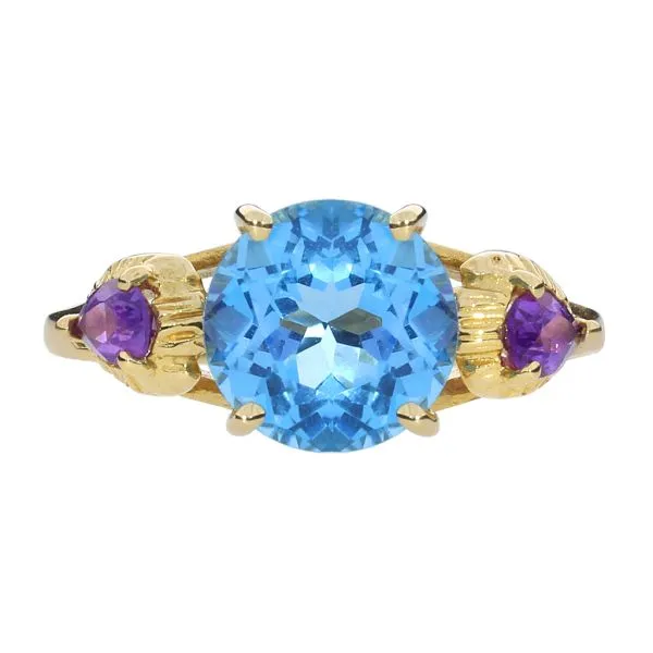 14K Yellow Gold 2.89ct Blue Topaz and Amethyst 3 Stone Ring Image 2 Purple Creek Holly Springs, NC