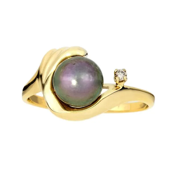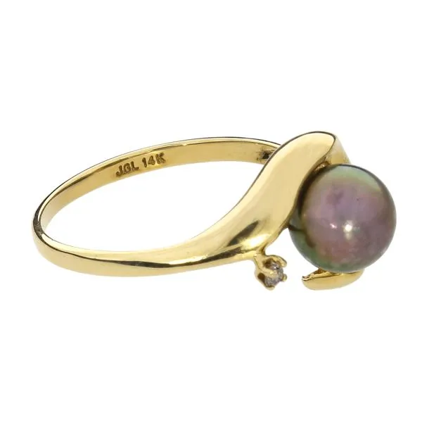 14K Yellow Gold 7.37mm Black Akoya Pearl & Natural Diamond Ring Image 2 Purple Creek Holly Springs, NC
