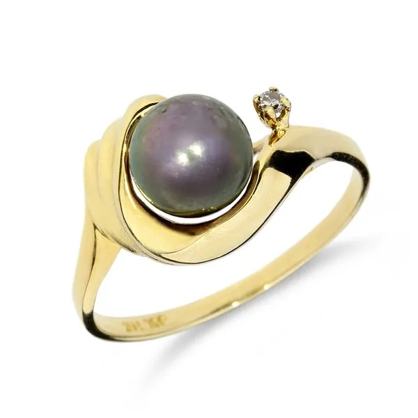 14K Yellow Gold 7.37mm Black Akoya Pearl & Natural Diamond Ring Purple Creek Holly Springs, NC