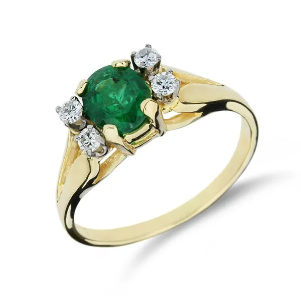 14K Yellow Gold .78ct Emerald & Natural Diamond Ring Image 2 Purple Creek Holly Springs, NC